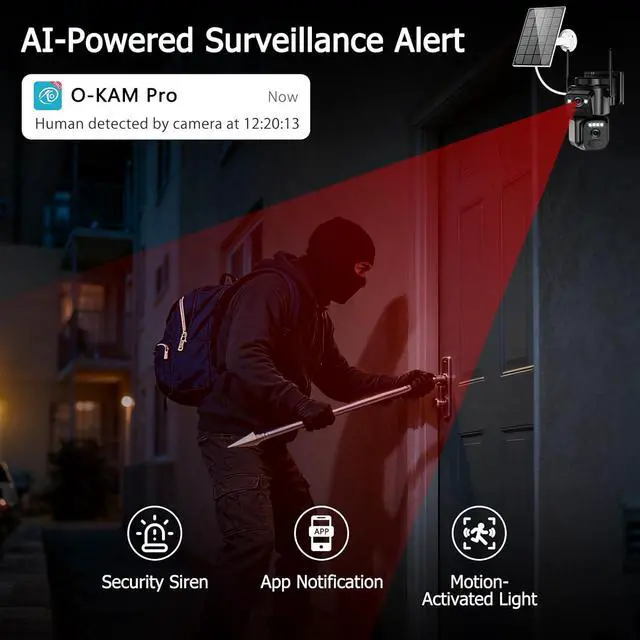 Motion Detection & Two-Way AudioThis outdoor wireless security camera features PIR motion detection, capable of detecting human presence within a 10-meter range and automatically locking onto and tracking targets. Upon detecting an intruder, your phone will receive real-time push notifications and trigger audible and visual alarms. You can also use the two-way audio function to communicate with delivery personnel or family members, or to warn off intruders.