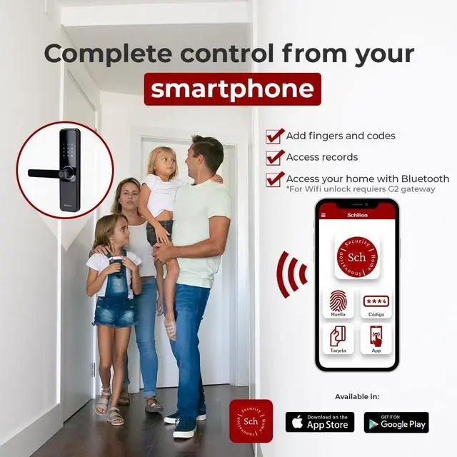Unlock your doors comfortably and safely! Access your home using fingerprint, code, card, app, or key.