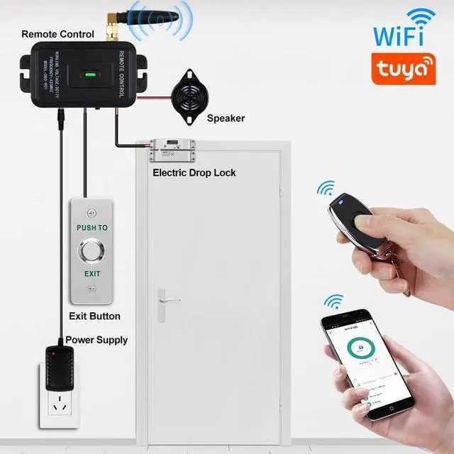 APP UNLOCKING AND REMOTE CONTROL Through wifi, You can pair this kit with your smart phone on Tuya Smart APP easily, then control your lock anywhere with Internet signal. All 4 remote control transmitters can be added to this controller together, up to 30 meters(98 feet) remote control distance, you can open the door for your guests immediately. (Check App connection and remote control pairing video on product page)