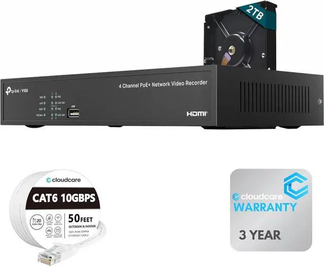 Efficient Video Compression and Storage: Uses advanced H.265+/H.265 compression to reduce storage requirements without compromising quality, supporting up to a 10TB HDD for extended recording times and preinstalled with a 2TB HDD for instant setup.