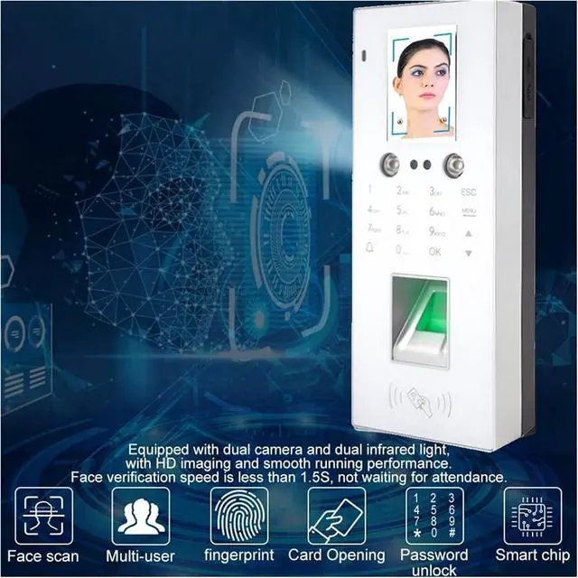 This attendance access control supports face recognition &fingerprintpasswordcardmethods And face recognition attendance can meet the needs of 300 users