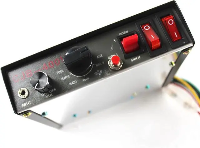 PART NAME: Warning Alarm 400W DC12V 9Sound. PACKAGE INCLUDES: 1x Wire Cable,1x Light Control Cable, 1x Hook, 1x Mainframe, 1x Horn, 1x Speaker, 1x User Manual, 1 Set of Screws