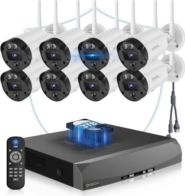 Color Night Vision Designed as a complete nvr security camera system, this solution features built-in infrared and white LEDs for dual-light illumination. When motion is detected, the camera automatically switches to color night vision mode, capturing faces, vehicles, and surroundings clearly up to 100ft away. This advanced security camera system wireless delivers bright, real-life images even in total darkness with stable and reliable night surveillance.