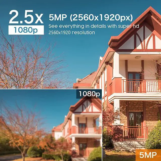Full Color Night Vision & 5MP Super HDWith the 5MP resolution, the camera will show you a clearer colorful image even in total darkness, extending your night vision distance to 60 feet. The 8CH 5MP wireless NVR works with FOUR surveillance cameras to deliver bright and colorful images.