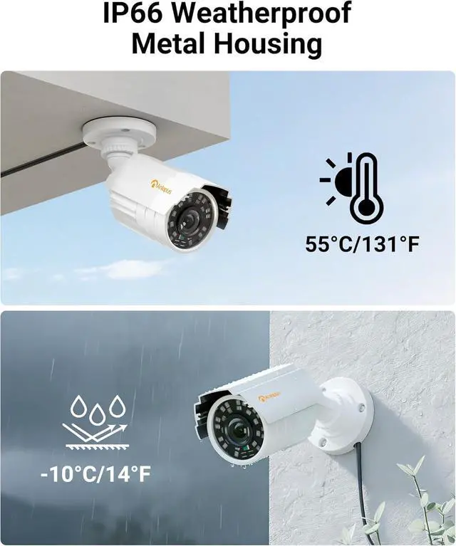 Enhanced Night VisionEquipped with an automatic IR-CUT filter, this wired security camera delivers sharp and vibrant images day or night. Experience up to 80ft of clear night vision in complete darkness, ensuring reliable surveillance even in low-light conditions.