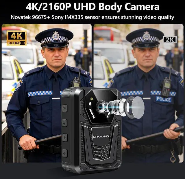 4K & 42MP Body CameraThis is a 4K body camera with audio and video recording. Equipped with Novatek 675 controller and IMX335 sensor, it records clear and bright videos for you exceptional viewing experience. Its 1/2.8-inch, 170° wide-angle lens perfectly captures important scenes as valuable evidence. It's ideal for police enforcement, security patrols, driving records, and personal recording