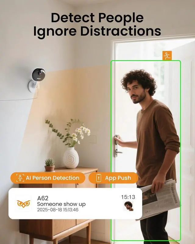 (3). [AI Smart Detection & Real-Time Alerts] __ Experience peace of mind with built-in AI that accurately identifies people and motion within customizable detection zone. Receive instant push notifications directly to your phone whenever activity is detected, ensuring you're always informed.