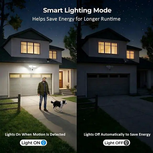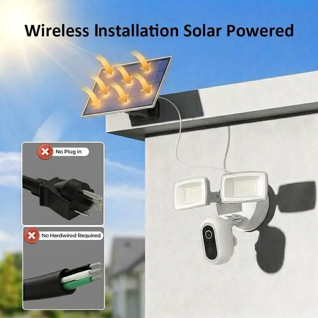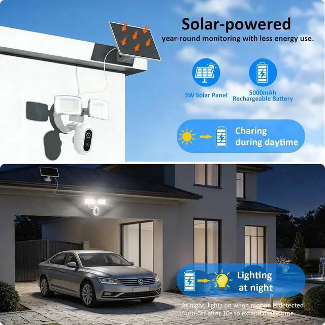 Dual Adjustable Heads for Wider Coverage: Delivering 1600 lumens of brightness, this solar security camera light features two independently adjustable light heads, allowing you to direct light exactly where its needed. Illuminate multiple areas at oncesuch as the yard and driveway or the porch and front doorfor broader, more flexible outdoor coverage.