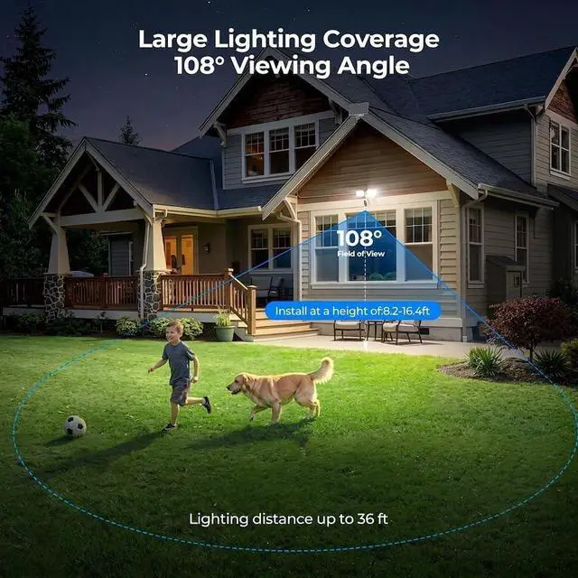 Full-Color Night Vision & 1600LM Brightness: With 1600 lumens of illumination from a 1500-lumen main light and 100-lumen camera night light, this outdoor camera light helps full-color night vision capture clearer details after dark while reducing dark corners around your front door, garage, patio, side yard, or backyard entrance.
