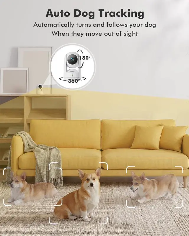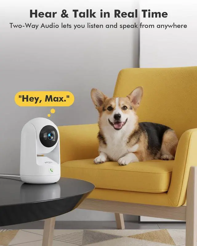 2K Clarity and 360 Degree Coverage: See pets, babies, and every corner clearly with crisp 2K live video, pan and tilt control, and full-room coverage from the Dzees app anytime.