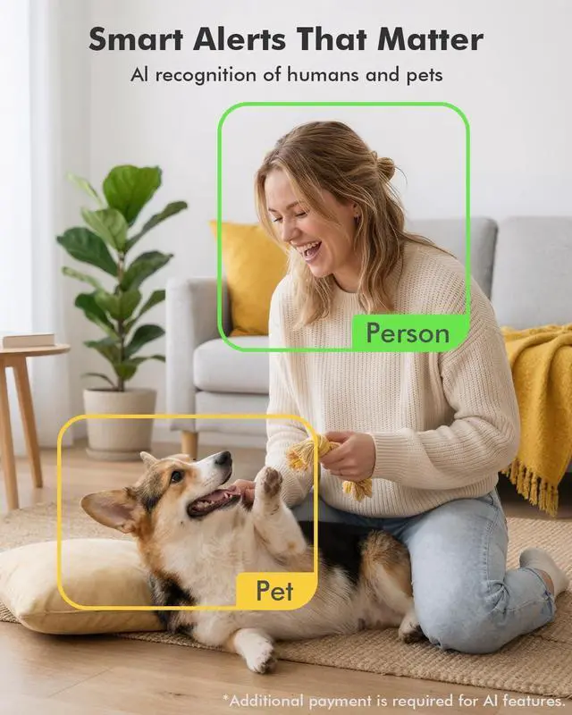 AI Motion Detection and Motion Tracking: Receive smart alerts for people and pets, enjoy automatic tracking, and reduce false notifications by setting key monitoring zones and preset viewing angles.