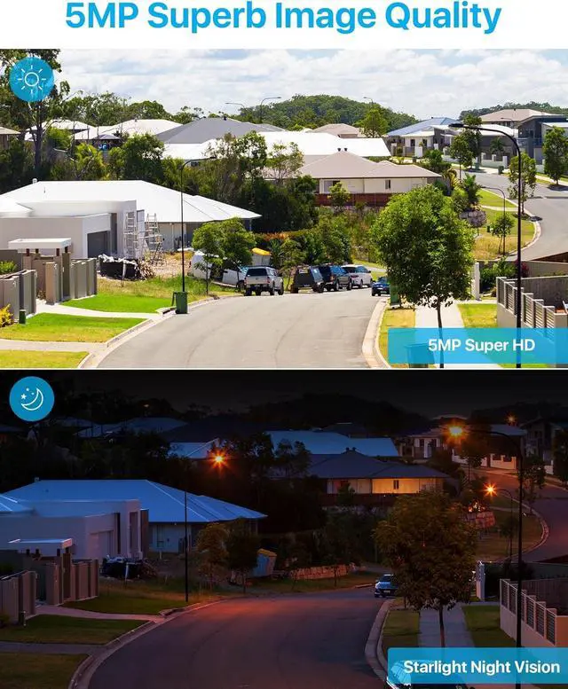 5MP full HD video and 100ft IR Night Vision 5 Megapixel super high definition video, 2. 5 x better than 1080P Full HD, super high definition video to see every detail and protect your premises. Up to 100ft night vision and with advanced starlight sensors can see brighter full-color nighttime videos.