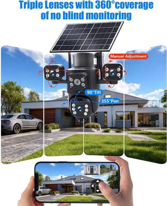 Triple Lenses Linkage + 355º Pan & Tilt: One device is more stronger than 2pc bullet cam + 1pc dome cam, can cover whole a yard 360º from front door to right and left boundary or mall hall, much value of money with a less cost and works of installation.