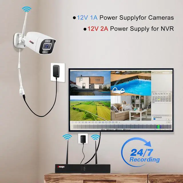[Corded Electric Power, 24/7 Recording] WiFi Security camera system, DC plug in powered of CAMERAS and NVR support 24/7 recording, no dropouts or battery hassles. 3 recording modes (24/7 recording, motion-triggered recording, or customized recording ), total flexibility