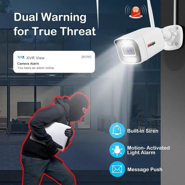 [AI Human Face /Motion Detection & Alert Push] Precisely Detect Human Face, The camera system is smart enough to detect people and other motion objects, safely reduce unwanted notifications. You will receive instant App push notifications, sound alarms (siren) when motion events are detected