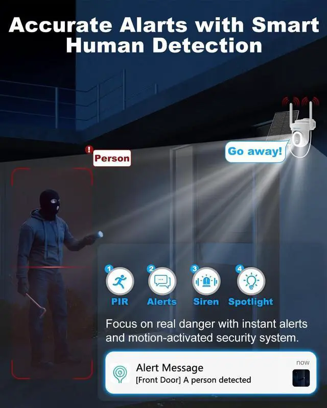 Smart Motion Alerts & Easy InstallationAdvanced motion detection sends instant alerts directly to your phone. Customize detection zones and sensitivity to reduce false alarms. With IP66 weatherproof protection, installation takes just minutes on walls, poles, or trees.