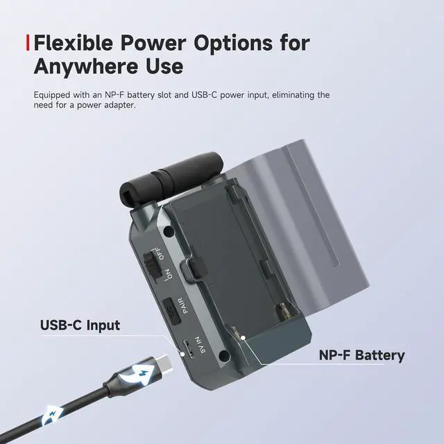 Flexible Power Options:Featuring an NP-F battery slot and USB-C power input, it eliminates the need for power adapters,offering flexible,on-the-go power