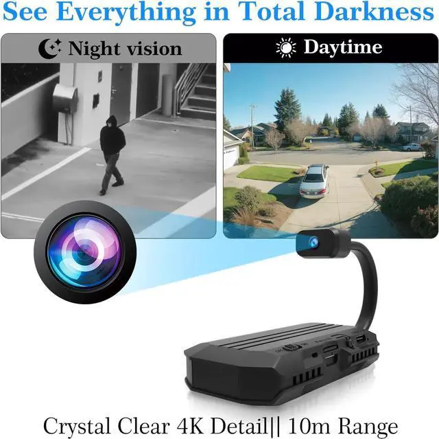 4K Ultra HD Resolution with 8-Meter Night Vision Real-time monitoring delivers crystal-clear 4K resolution. Equipped with night vision capabilities, the camera captures sharp images even in complete darkness, providing round-the-clock protection for your home and property.