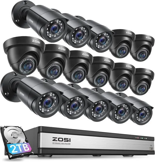 ZOSI 3K Lite 16CH Security Camera System,AI Human Vehicle Detection Night Vision,16x 1080p Indoor Outdoor Surveillance CCTV Camera,16 Channel 1080P CCTV DVR with 2TB Hard Drive,for 24/7 Recording