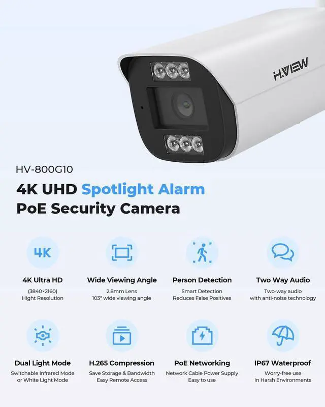 [Smart AI Detection/Smart Alert]- This 8MP PoE IP camera can identify people in terms of their shapes, which minimizes unnecessary alarms such as animals or shadows. It can also specify the type of detection when sending motion alerts to you. You can know what happened by just glancing at the phone screen.