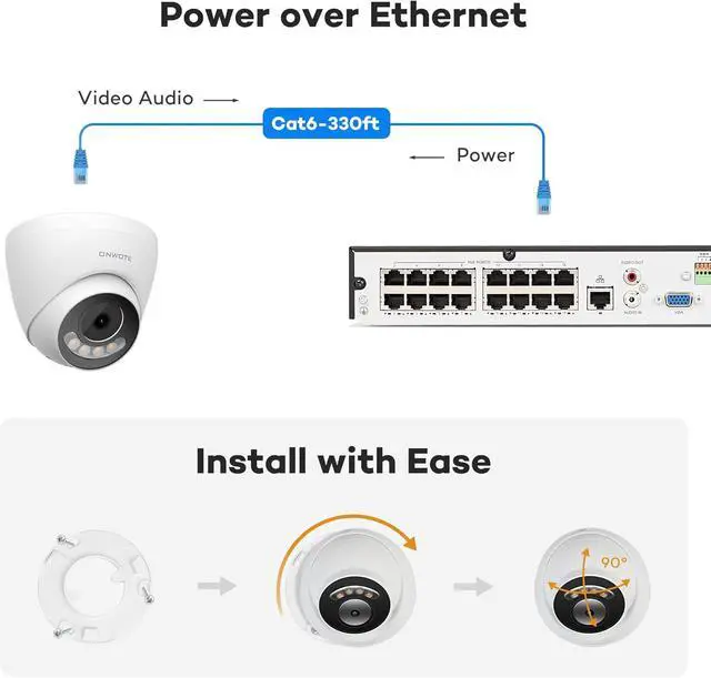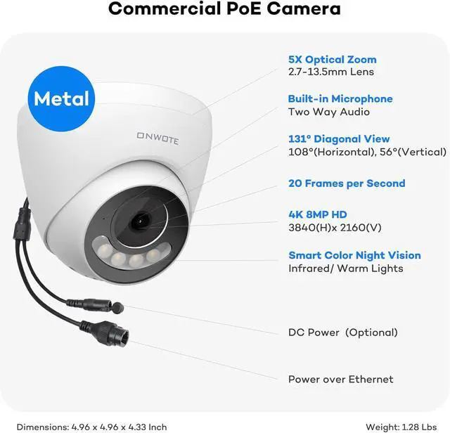 Add-on to ONWOTE System-- Work with ONWOTE 12MP/ 8MP PoE NVR or PoE switch with 48V-54V power supply.