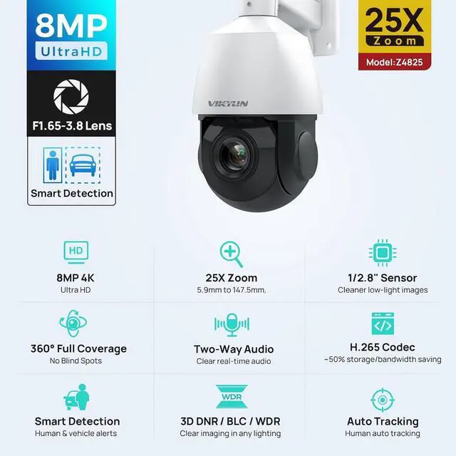 8MP ULTRA HD PTZ SECURITY CAMERA Capture clear surveillance footage with 8MP resolution at 20fps. Advanced video compression helps reduce bandwidth and storage use while maintaining sharp video quality for reliable monitoring.