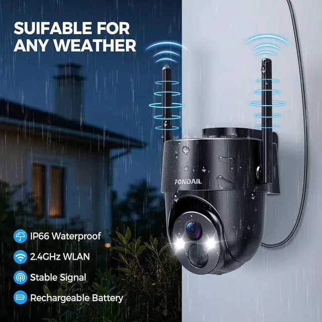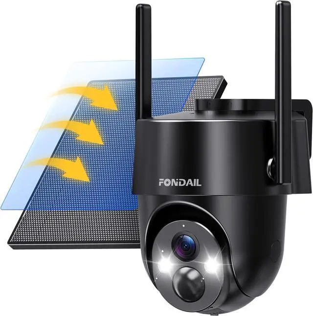 Solar Powered, Install Anywhere, 100% WirelessFONDAIL Outdoor Security Camera: Simply place it in direct sunlight to charge! No more worrying about dead batteries or messy wires. The solar panel ensures continuous charging under direct sunlight, and the built-in rechargeable battery, ensuring uninterrupted monitoring in bad weather or low light conditionsjust set it and forget it!