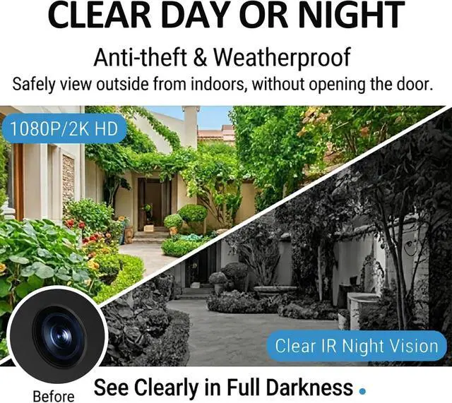 Inside-the-window viewer Optimized for glass penetration, the camera is concealed indoors yet provides clear monitoring of the yard and driveway, impervious to wind, rain, and outdoor damage.