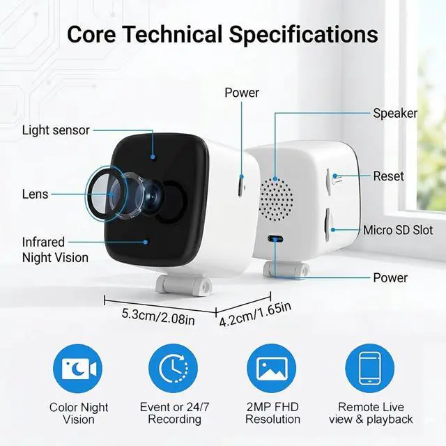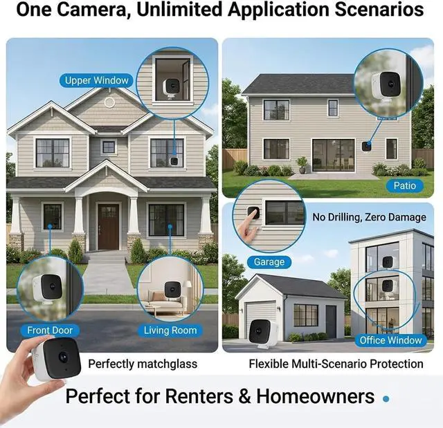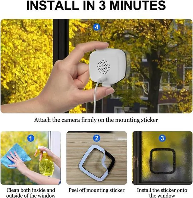 Magnetic window mounting Strong adhesive pads ensure secure attachment; the camera can be easily removed for angle adjustments or card removal and playback, making it easy to move.
