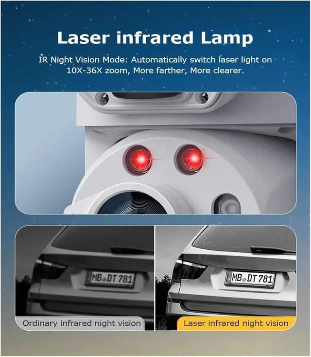 Built-in infrared LEDs provide an effective night vision range of up to 50 meters, vering crisp, clear images even in complete darkness.