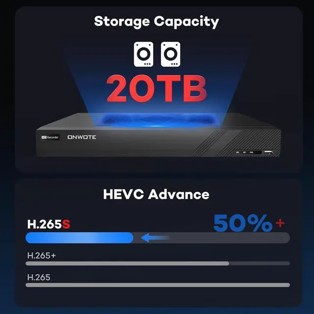 Storage Capacity 2 SATA HDD ports; supports up to 20TB hard drive for recording (HDD not included).
