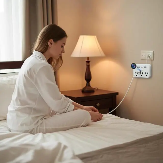Equipped with 3 AC outlets and 3 USB ports (including Type-C), it efficiently charges phones, tablets, and other electronics. Powerful charging capability meets all your power needs without compromising covert monitoring