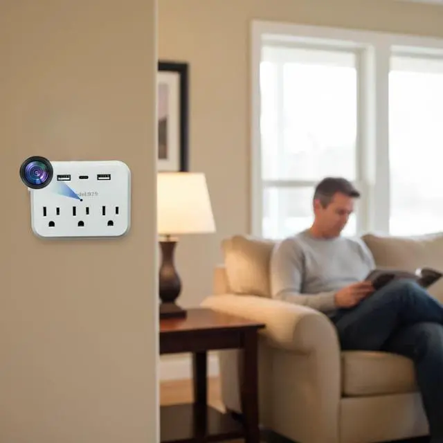 Functions as both a fully hidden camera for 24/7 surveillance and a practical outlet expander with extra power access. A two-in-one solution that seamlessly integrates into your home security system