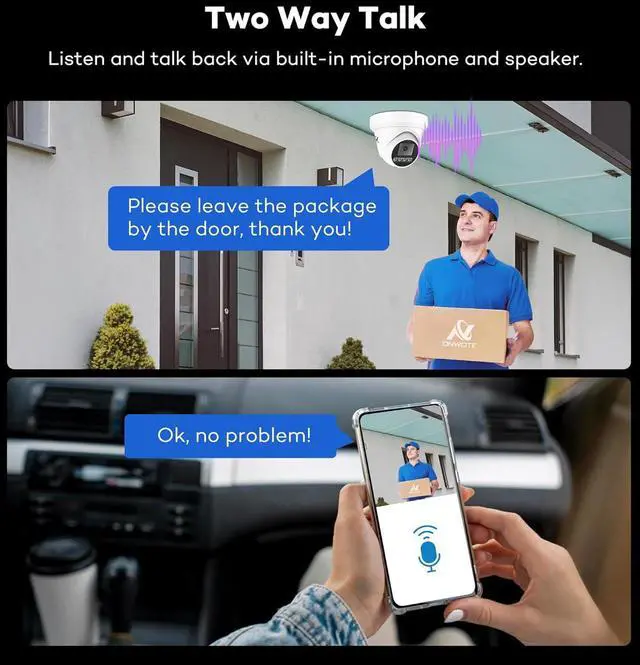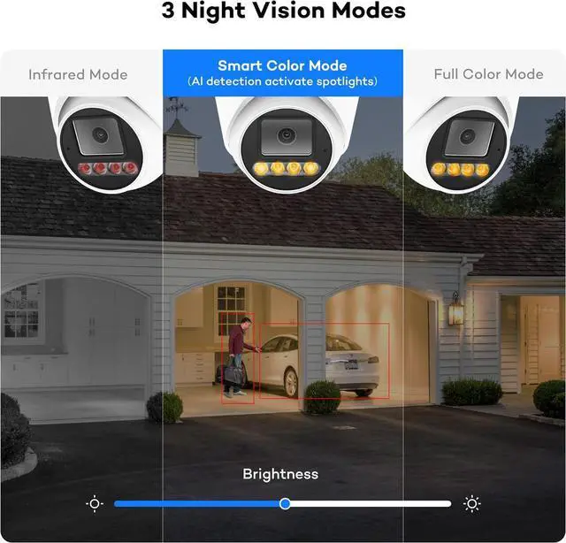 Smart Color Night Vision- AI human vehicle detection activate bright spotlights, deliver color night vision.