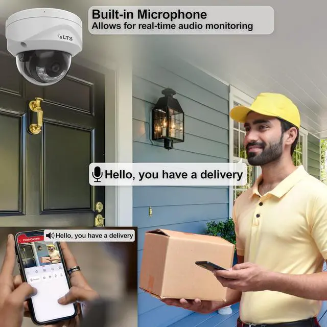 High-efficiency H.265+ compression technology and built-in microphone for real-time audio security