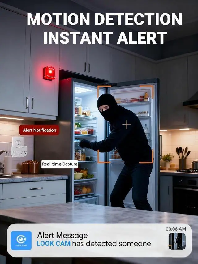 Plug-and-play, no wiring needed. Connect to 2.4GHz WiFi via app for remote monitoring anywhere. This camera records video only with no audio function.