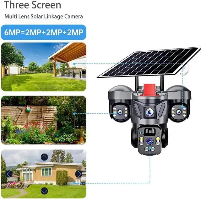 Triple-lens design (2MP+2MP+2MP) with 1080P resolution and 100° viewing angle, capturing all-around, clear surveillance footage without blind spots, ideal for home and outdoor security.