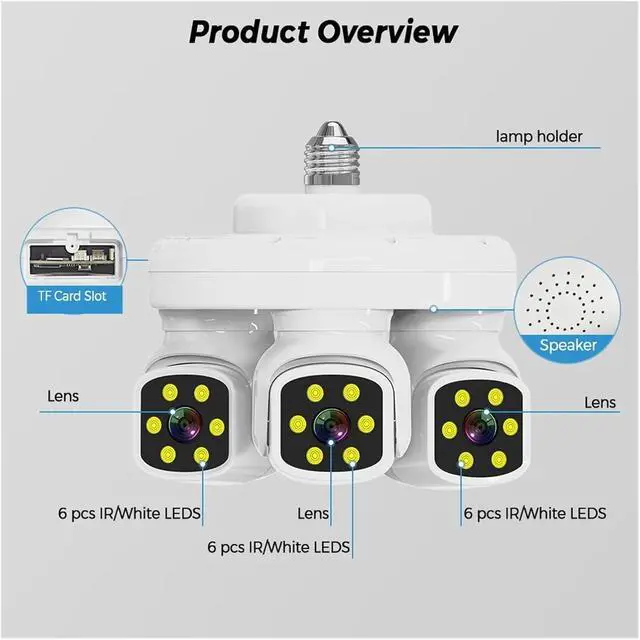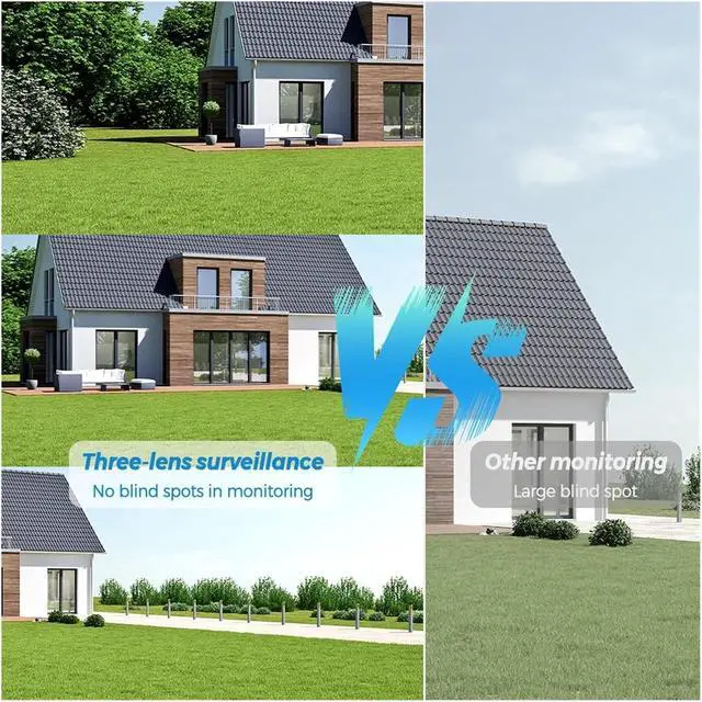 15MP triple-lens design with 5 million pixels HD and 1080P resolution, 3.6mm focal length and 360° viewing angle, supporting 3-screen view to capture all-around footage without blind spots.
