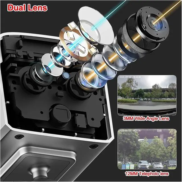 Dual-lens design (3mm wide-angle + 12mm 6x zoom) with 5x digital zoom and 2 million pixels, supporting 1080P full HD recording, capturing both wide-range and detailed footage effortlessly.