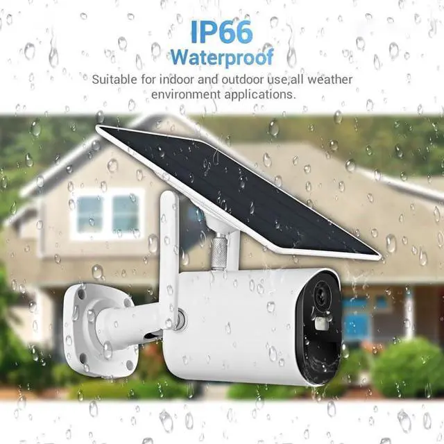 IP66 Waterproof & Easy DIY InstallationBuilt to withstand all weather conditions! With an IP66 weatherproof rating, this solar camera is resistant to rain, snow, dust, and extreme temperatures (-4°F to 140°F), ensuring reliable performance year-round. The adjustable mounting bracket and included hardware allow for quick and easy DIY installation in minutes, no professional tools required. Connect to your 2.4GHz WiFi network and start monitoring your home in no time!