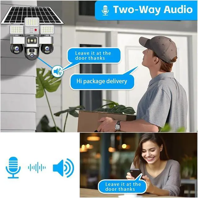 15 million pixels triple-lens design with 10x digital zoom and 90° viewing angle, delivering ultra-clear footage, paired with 355° horizontal and 90° vertical rotation for all-around outdoor surveillance.
