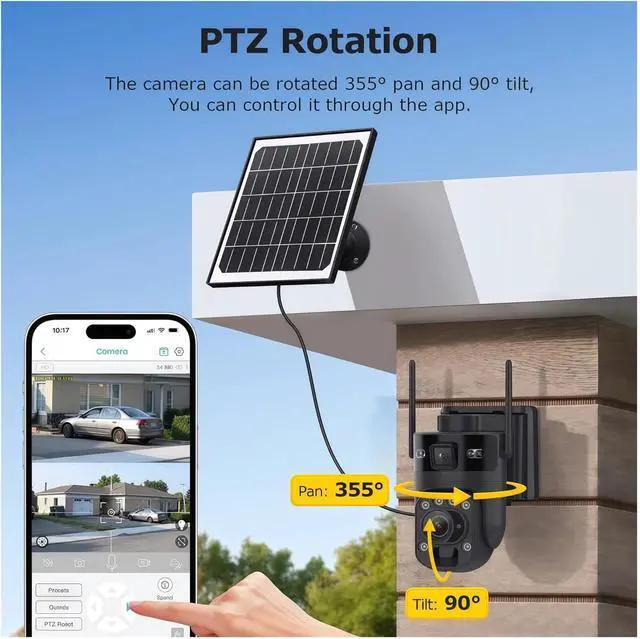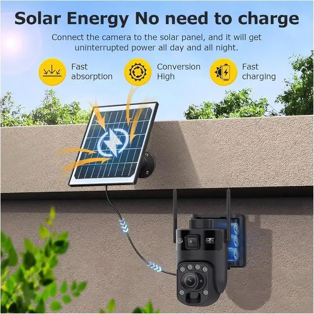Solar Power & Battery Backup:Sustainable energy with a built-in 10050mAh battery and 6W solar panel for non-stop surveillance.