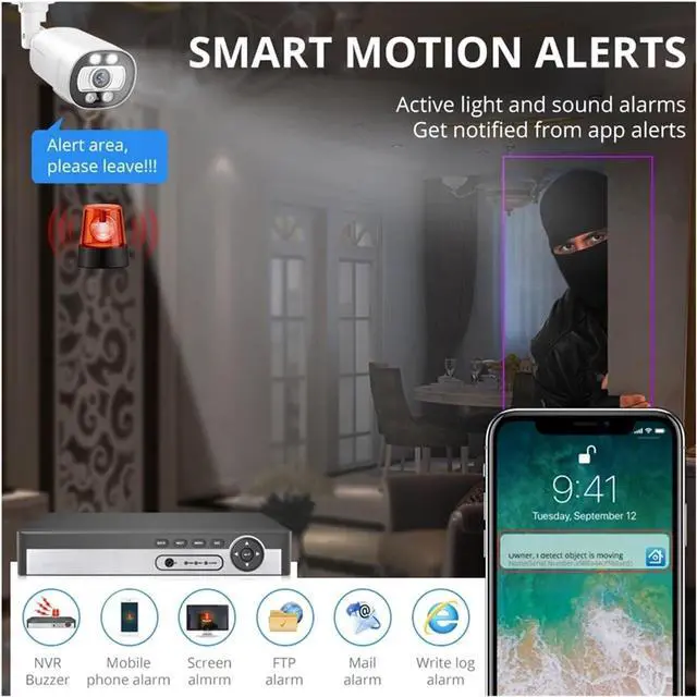 Equipped with AI face recognition technology, the system can accurately identify the face information entering the monitored area. When the system detects an unfamiliar face, you will receive an instant notification to help you respond to potential security threats.