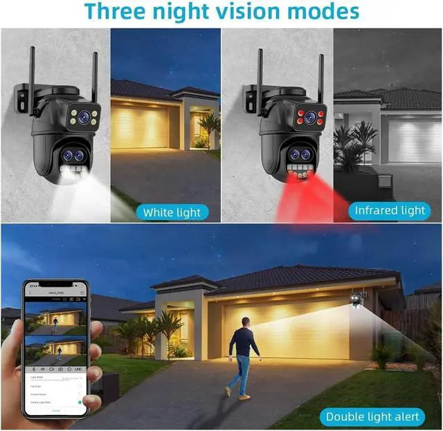 6K 12MP Wi-fi Security Camera Dual Screen 8X Zoom Outdoor Waterproof Color Night Surveillance Camera(US Plug,2LENS 8MP NO Card)