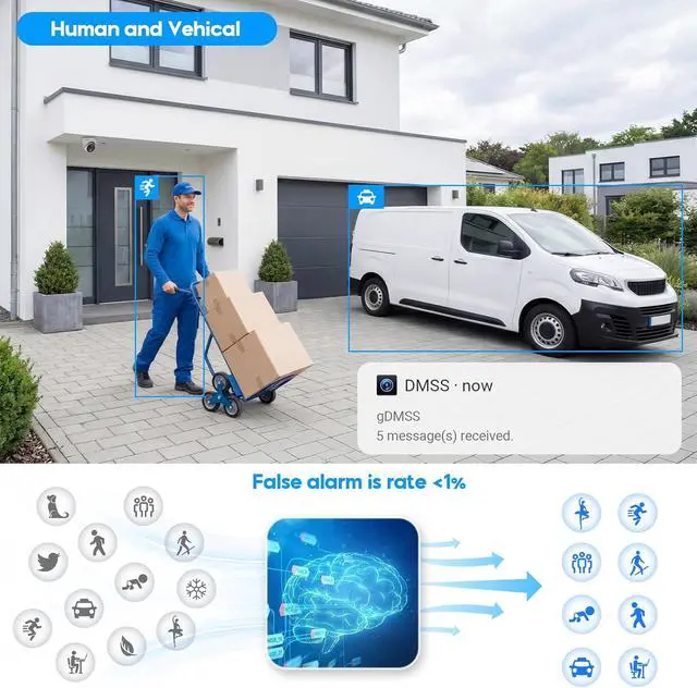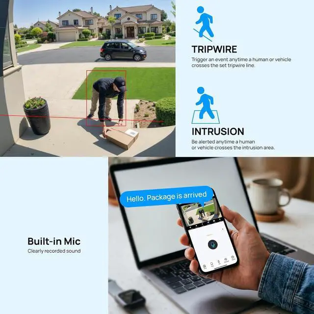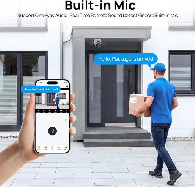 Smart IVS Detection & Real-Time Alert- This 4mp starlight camera is compatible with Intelligent Video Software(IVS). Intelligent detection: Human/Vehicle Detection,Intrusion, tripwire. Abnormality detection: Motion detection, network disconnection, IP conflict, illegal access, voltage detection, and so on. With its smart detection function, this camera minimizes false alarms by up to 97%, and provide timely feedback through smartphone to ensure your safety.With the built-in microphone, it also picks up ambient sound for an extra and exact details of security.