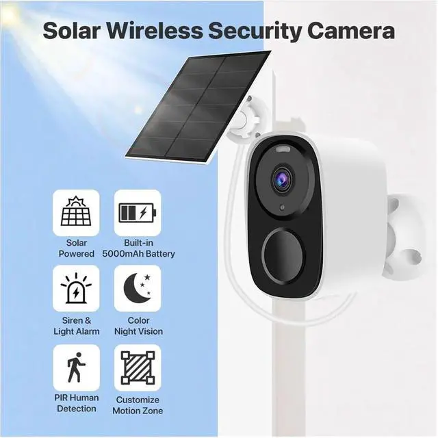 5000mAh built-in battery + 5W solar panel: Comes with a 3M extension cord, achieves long-term self-sustaining power supply, up to 180 days standby, no frequent charging needed.
