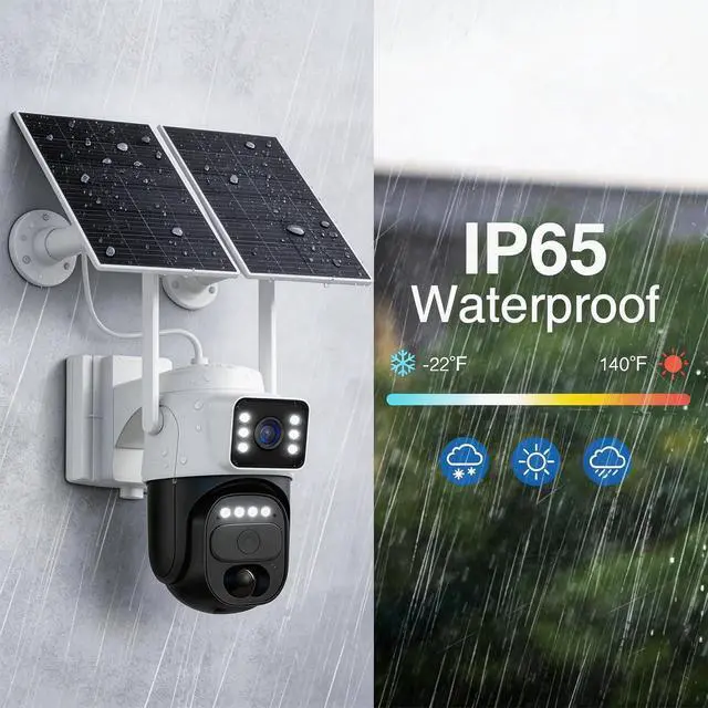 Dual Solar Panels & 10000mAh BatteryTwo 5W solar panels provide efficient charging, even in low light. The built-in 10000mAh battery features low-power design and 20% low-battery protection, ensuring long-term stable operation with less frequent charging.