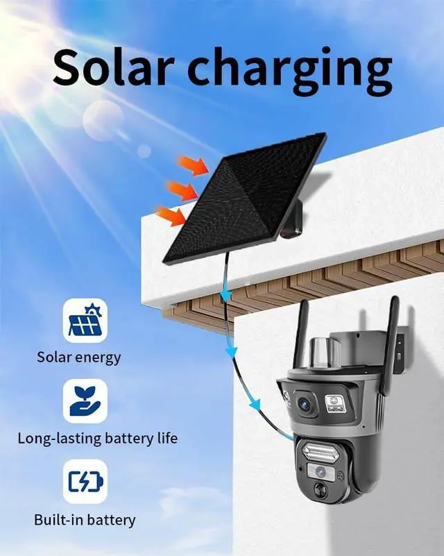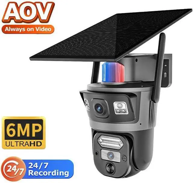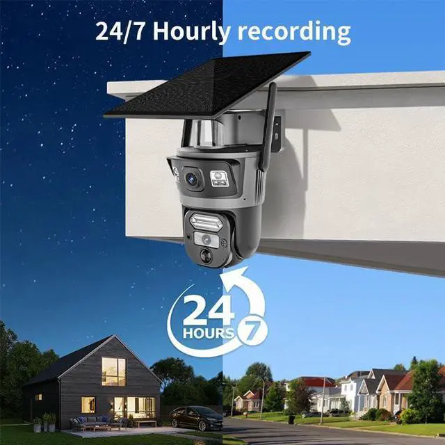 24/7 Continuous Recording with AOV & Solar Power.This solar security camera is equipped with a high-efficiency monocrystalline solar panel and a large-capacity rechargeable battery, ensuring it operates independently of the power grid. The AOV technology eliminates the need for motion-triggered recording, providing true 24/7 non-stop surveillance. You'll never miss a critical moment, even in standby mode, making it ideal for remote properties, or areas without access to power outlets.