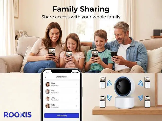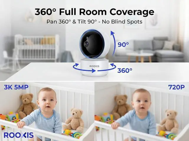 360° Pan and Tilt Coverage - This PTZ camera rotates 360° horizontally and 90° vertically to cover your entire room with no blind spots. Control viewing angles through the app, set patrol routes, or enable motion tracking to follow movement automatically.