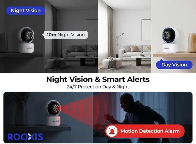 Night Vision and 2-Way Audio - See up to 32ft (10m) in complete darkness with infrared night vision. Built-in microphone and speaker allow two-way communication through the app. Talk to family members, pets, or monitor your baby from anywhere.